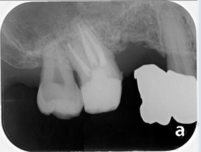 右上の奥から2番目の歯の神経が感染していたので、神経を取り、最終的な薬で埋めたところです。